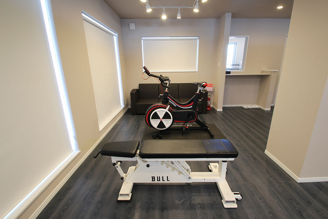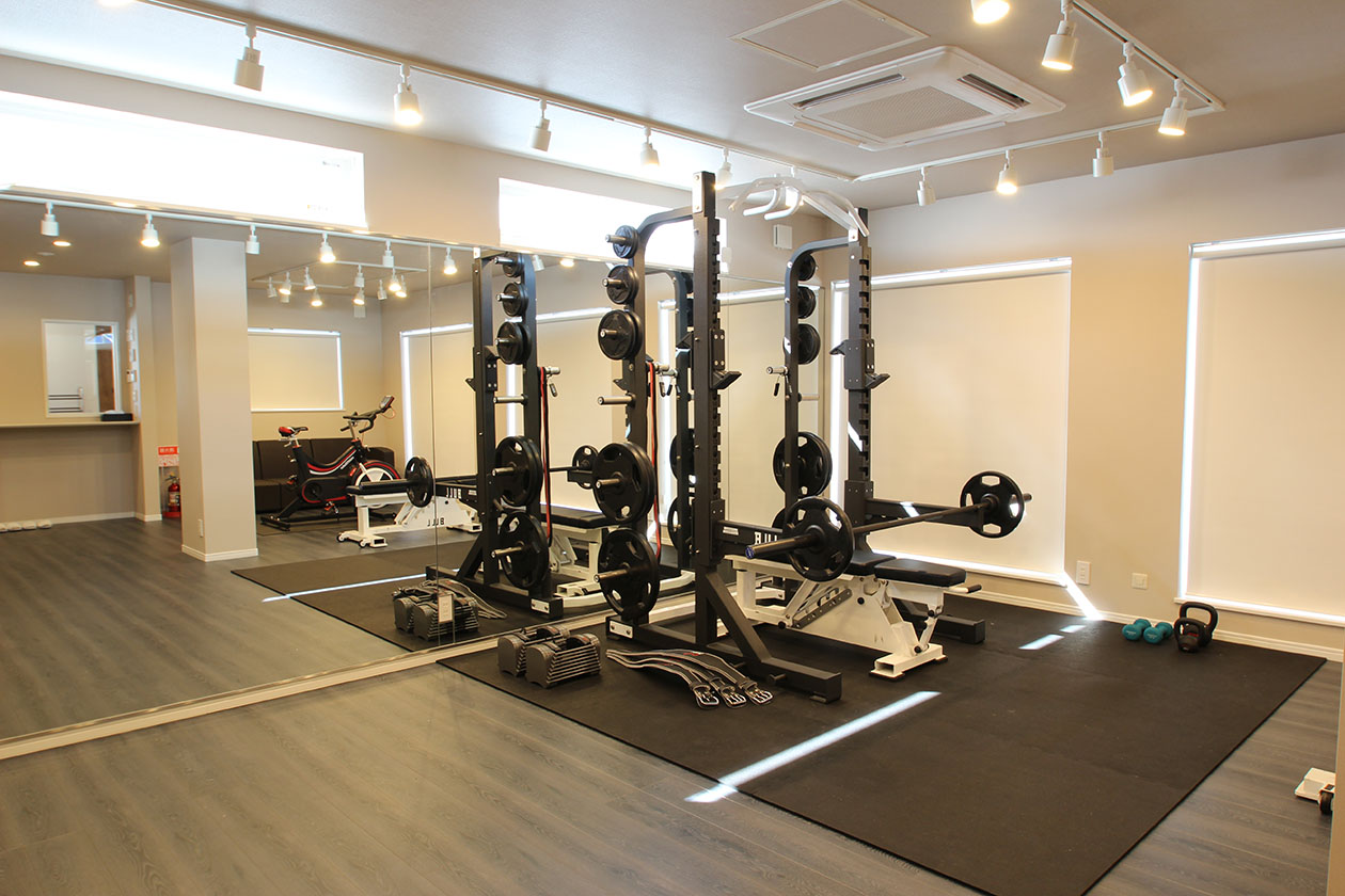 ウォーミングアップやストレッチ、筋力トレーニングを行えるスペースです。壁一面が鏡になっているので、フォームをチェックしながらより効率的なトレーニングを行えます。 《設置備品》 ■ Wattbike pro 1台 ■ BULL ハーフラック 1台 ■ ベンチ 1台 ■ ラバープレート 175kg セット ■ ケトルベル 4kg / 10kg 各1個